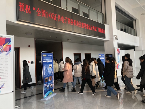 1月4日,首批全国“1+X”证书网店运营推广职业技能等级认证考试在学校综合实训楼举行,副院长孔宪思,教务处、商学院相关负责人以及校外巡考人员查看了考试组织及实施情况。商学院电子商务专业74名学生参加了此次考试。