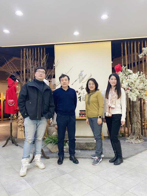 1月5日下午,艺术学院院长乔璐、服装专业教师李晓伟走访了花手箱品牌管理(青岛)有限公司,公司执行董事兼总经理江世祥、中国缝制智慧工厂联盟副秘书长郭天昊接待了艺术学院一行。