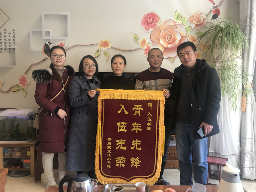 1月10日,学生处副处长郭静、信息学院党总支副书记白杭及辅导员一行走进信息学院应用电子技术专业2017级1班参军学生于智超的家庭,送去了学校的关怀和慰问。