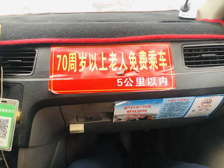 黑廷政师傅出租车上的助老标识