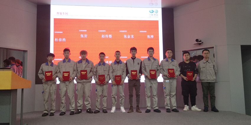 刘准公布了优秀实习生名单,各车间相关负责人分别为优秀实习生颁发证书。车间相关负责人在发言中对我校实习生的表现给予了高度评价,希望同学们在今后的学习和实践中不断提升自己,实现新的突破,为国家和社会多做贡献,从而实现自己的人生价值。孙月江回顾了机电一体化专业多年来与一汽大众联合开展工学交替实习的经历,对一汽大众为学生提供的优质实习资源表示感谢,对同学们顺利圆满完成工学交替实习任务表示祝贺,希望同学们以实习成绩为新的起点,在未来的学习生活中,能够再接再厉,为今后走上就业岗位打下坚实的基础。随后企业领导为每位实习生颁发了结业证书。