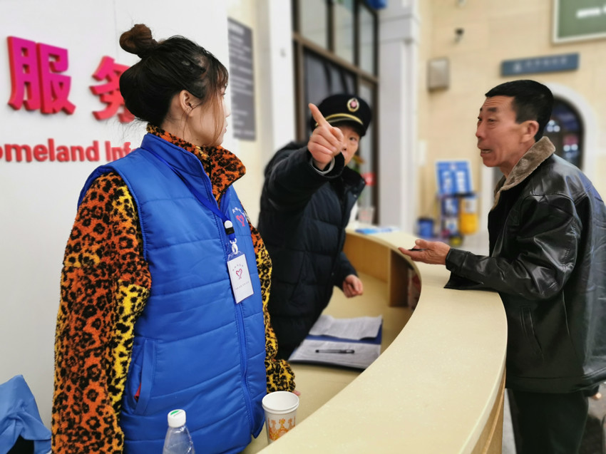 志愿者为返乡旅客提供咨询服务