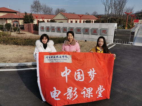 1月15日,教育学院“中国梦电影课堂”实践团成员赴西海岸新区铁山街道杨家山里红色教育基地参观学习。