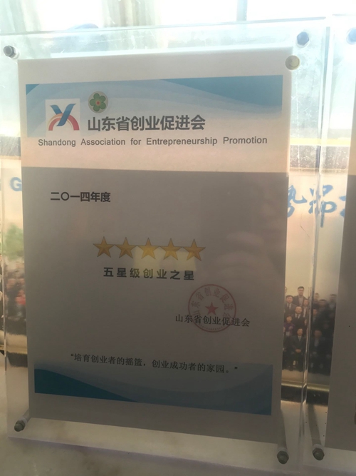 荣获山东省创业促进会五星级创业之星