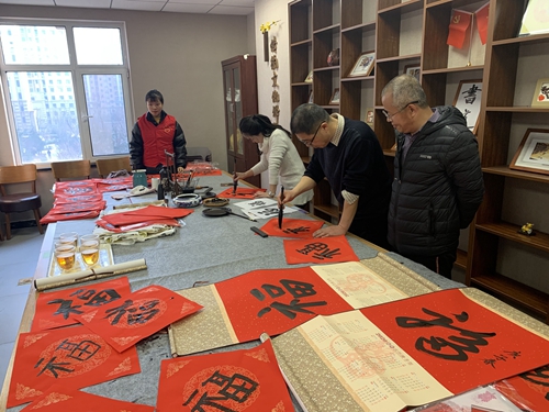 1月14日,瀚海书院以“挥毫送祝福,墨香迎新春”为主题,联合青岛西海岸新区长江路街道峨眉山路社区党委开展了迎新年主题社会实践活动。