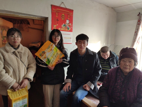活动开展前,团队3人去超市购买了慰问物品,并在村长的带领下来到村里一家困难户,队长刘国庆向老人说明了团队的来意,老人向团队成员表达了感谢。通过沟通交流,团队成员们了解到老人的儿子从小智力和语言交流有一定障碍,大家表示将尽自己的努力给予老人儿子更多的关怀与帮助。最后,团队成员为老人送上了慰问物品,并帮助老人对居住环境进行了清扫。