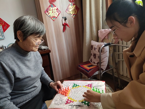 活动中,同学们与老人们聊家常,帮老人捏肩和打扫卫生,陪老人下棋,房间里不断传出阵阵的笑声,活动现场气氛融洽。
