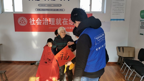 1月15日,知行书院志愿者同灵珠山街道社会治理办工作人员,以及裕阳公益志愿者一同走进独垛子社区开展“寒冬温暖季,公益进乡村”活动。
