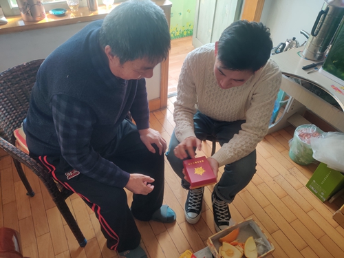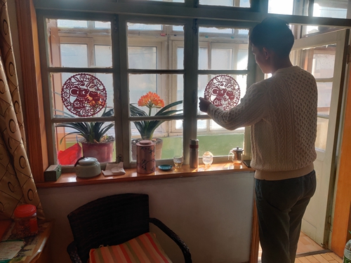 实践队成员帮老人贴窗花