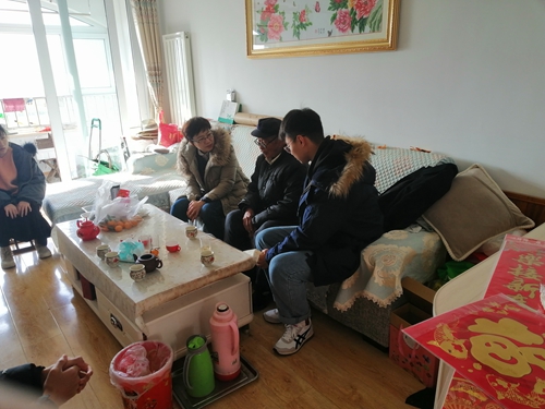 活动中,志愿队师生一行来到村居改造后老人的新家,亲切地同老人聊家常,深入了解老人目前的身体状况、社会保障情况和日常生活状况,仔细询问老人对日常结对帮扶过程的需求。交谈中,志愿者同学们向老人汇报了自己过去的一年里在思想、学习、工作、生活等各个方面的成长与收获。徐爷爷是有53年党龄的老党员,他向师生们分享了自己的入党初心,讲述了新中国成立七十年来祖国发生的翻天覆地的变化,同时勉励同学们珍惜时光、好好学习,用真本事实现自己的理想、为祖国争光,给同学们上了一堂生动的党课。此次活动,志愿者还为老人带去了新春慰问品和过年的新衣,并向老人致以新春问候。