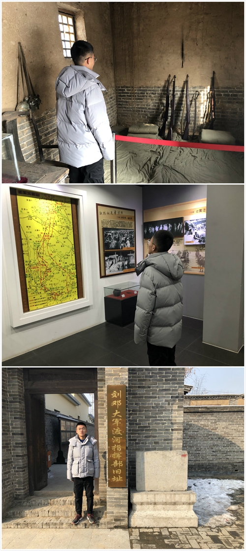 1月8日,实践队成员参观位于聊城市阳谷县寿张镇沙河崖村的刘邓大军渡黄河战役纪念馆,在纪念馆讲解员的介绍下从战略态势、渡前准备、强渡黄河、渡江战役、人民支前等多个方面系统学习刘邓大军强渡黄河的事迹,详细了解这段震撼人心、催人奋进的革命历史,认真感悟革命先辈艰苦奋斗的革命历程,深刻感悟革命先烈们不怕牺牲、英勇顽强的斗争精神以及战争年代老区人民与子弟兵的鱼水深情。