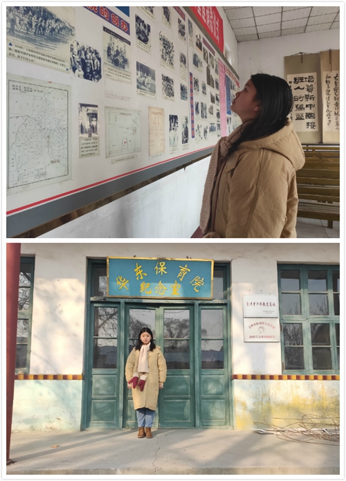 1月16日,实践队成员赴位于青州市弥河镇大关营村的华东保育院旧址开展红色主题社会实践活动。在纪念馆内,实践队成员通过参观碑刻了解华东保育院创建的原因、经过、意义,通过参观纪念室中摆着的老旧的课桌凳和墙上挂着的华东保育院的资料照片,了解华东保育院的光辉历史和发生在这里的英雄事迹。