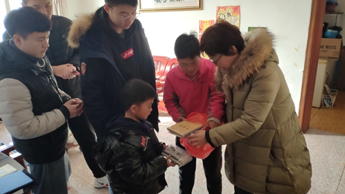 走访中,费晓玉与别鑫宇妈妈亲切交谈,详细了解了别鑫宇升入大学后的学习、生活情况,并与因参加社会实践尚未返家的别鑫宇通了电话,她鼓励别鑫宇要珍惜大学时光,认认真真学好专业知识,扎扎实实提高专业技能,利用课余时间多参加第二课堂社会实践活动,努力提升自己的综合素质。师生一行还专门为别鑫宇的弟弟带去了学习用品及课外阅读书籍,并为其一家送上精心准备的新年礼物,送上新春的祝福。别鑫宇的妈妈向师生多年来对孩子们的关心和照顾表达了感谢,并希望别鑫宇将来能够成为一名合格的教师回报社会。