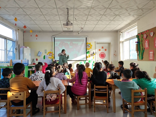 1月18日,艺术学院萌芽团队志愿者来到淄川城中幼儿园开展“弘扬爱国主义精神活动”的宣讲。