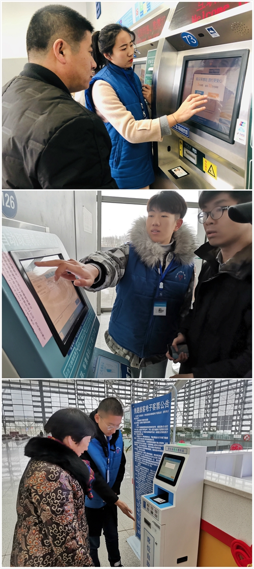志愿者帮助旅客购票
