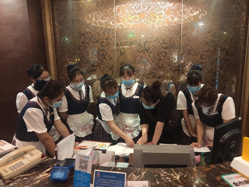 我校学生在青岛威斯汀酒店顶岗实习培训现场
