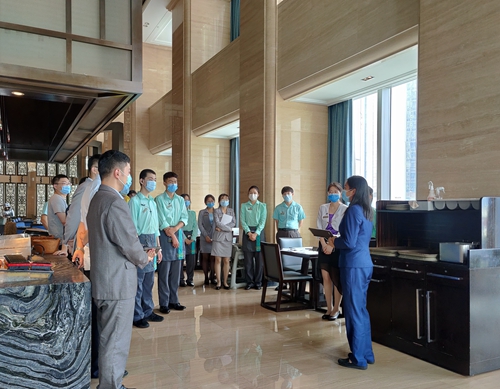夏季学期,旅游日语专业现代学徒制项目39名学生赴青岛市区三家高星级酒店开展实习。该项目于2018年启动,以培养未来酒店业职业经理人为愿景,先后在酒店现场开展了《高星级酒店产品知识》《五星级酒店产品服务体验》《管理层跟岗实践》《餐饮摆台》等课程。疫情期间,推出了《疫情下的青岛酒店业》《沟通技巧》《师傅的职业成就之路》等云课程系列,学徒制项目扎实推进。在酒店现场教学、云课程网络教学等多种形式推动下,我校学生专业技能、职业素养有了一定提升。夏季学期,学生赴青岛香格里拉大酒店、青岛威斯汀酒店、青岛丽晶大酒店一线运营岗位,开展了为期6个月的岗位实践。学校联合酒店,采取了三导师制,即校内实习指导教师、酒店学徒制导师、岗位带班师傅三方联合,校企合力做好学生思想疏导、业务技能提升,助力学生更好适应职业岗位。