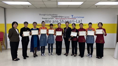 我校学生在青岛香格里拉大酒店顶岗实习培训合影