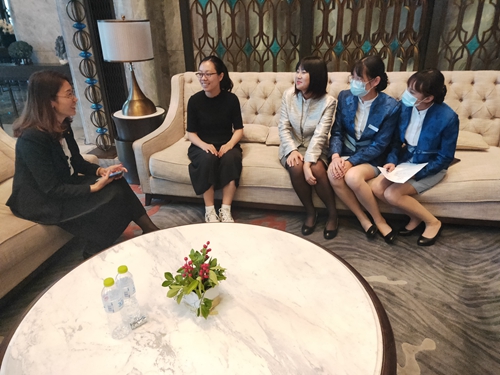 与青岛东方影都融创万达文华酒店前台岗位学生交谈