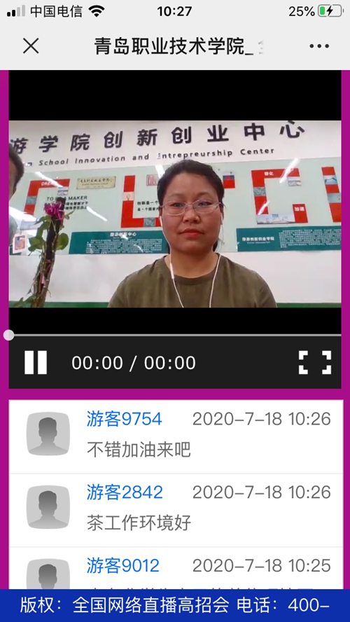 旅游学院还携手全国著名导游、规划管理专家等开展“向阳而生,在青职遇见更好的自己”文旅融合云课堂主题系列活动,并面向全国观众开展抖音直播,学校师生、旅游从业者等千余人同时在线收看。疫情防控期间,为做好线上招生宣传的推广,旅游学院假期召开专业部主任线上招生宣传研讨会,专业部主任“变身”招生主播,做客全国高校网络直播间,全国各地考生及家长在网上即可与其进行交流,打破了线下招生宣传的地域局限性。