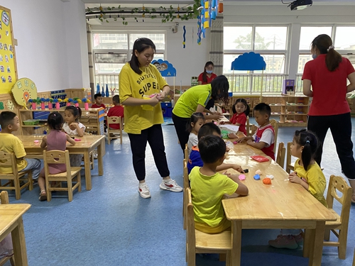 活动伊始,团队成员与园长及幼儿园教师们进行了座谈,交流创新教学的方式方法,并就如何促进幼儿想象、创新等思维能力的发展进行研讨。活动中,实践团队成员开展了“捏出我心中的小兔子”手工课程的展示,并在课后进行课程反思与评价,活动的开展获得了东方之星幼儿园教师们的一致好评。