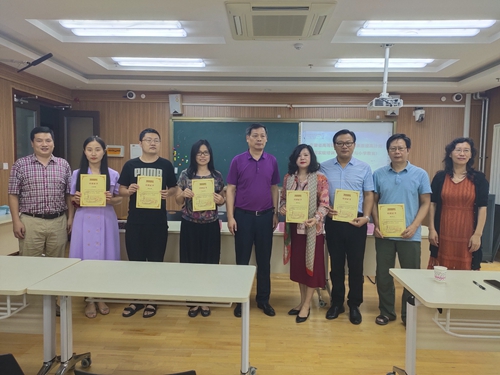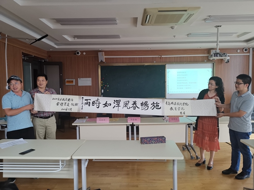 结业仪式上,学员们观看了培训班为大家精心制作的“培训历程”视频短片,共同回顾了近一个月的学习生活。合肥幼儿师范高等专科学校陆庆九、淮南职业技术学院杨翠兰等8名学员作为小组代表,对整个培训过程进行了复盘展示,充分展现了培训成果。马鞍山高等师范专科学校教师金勇代表全体学员向培训班赠送亲自书写的书法作品,感谢培训班的辛苦付出。袁德水在讲中对学员提出期望,并对我校的培训工作给予了高度评价。最后参会有关领导为参训学员颁发结业证书。
