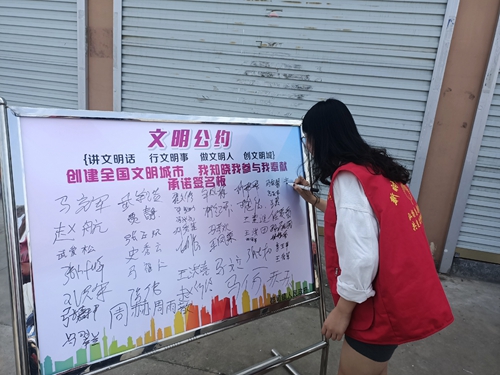 活动中,志愿者们向社区居民分发法律法规宣传单页,讲解《民法典》中常见法律知识,为社区居民进行法律科普宣传,引导大家在日常生活中增强法律意识,提高法制观念,做知法、守法、懂法的新时代文明公民。除此之外,志愿者们还与社区工作人员一同组织并参与了“共建美丽家园”捡拾垃圾兑换礼品、文明公约签名宣誓等活动。志愿者们以实际行动投身创建文明城市创建中,充分展现了我校当代大学生良好的青春风采和精神面貌,得到社区工作人员和居民的一致好评。
