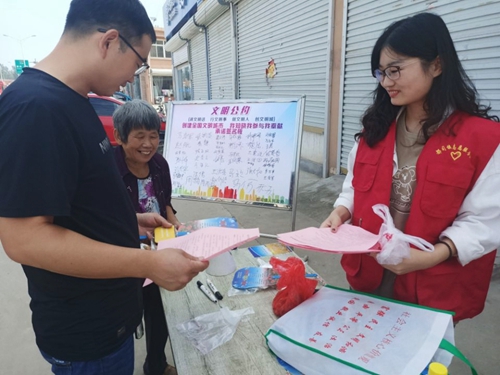近日,商学院小红帽志愿服务队成员在家乡社区参与了当地文明城市创建志愿服务活动。