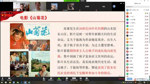 8月19日,中国梦电影课堂宣讲团录制宣讲课程,为朝城路小学2个年级共4个班开展了线上宣讲,160余名学生参加了此次宣讲。课程介绍了冯德英先生的生平及文学作品,围绕《山菊花》的电影,讲解了电影主人公桃子的思想变化,教育学生从现在开始自觉将自己的命运与祖国和人民同向同行,学好知识,练就扎实本领,勇挑重担,肩负起青少年的使命担当。