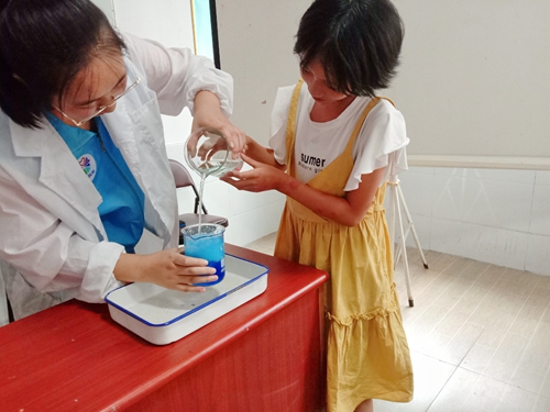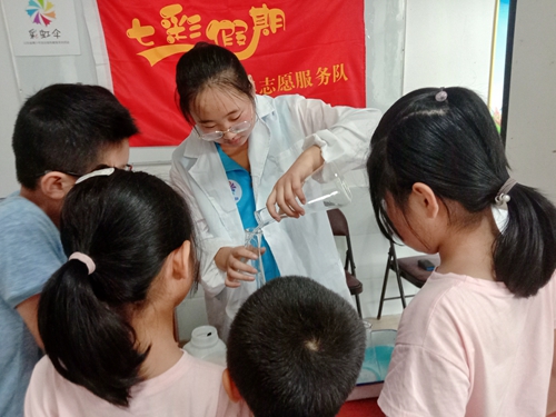 8月6日,知行书院萌萌化学家“七彩假期”志愿服务队赴青桐学堂——青少年公益暑托班张家楼镇站点启动为期14天的支教活动。