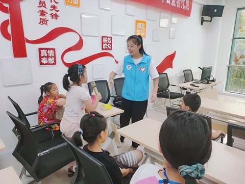 8月7日,萌萌化学家“七彩假期”志愿服务队志愿者参与青桐学堂辛安街道站点启动仪式并开启为期10天的支教活动。