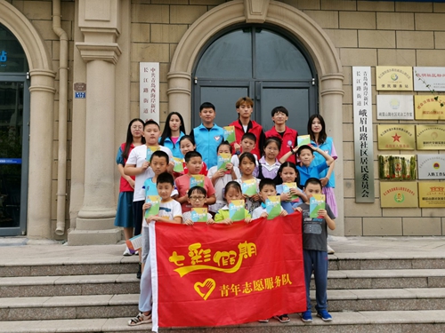 七彩假期社会实践小分队与社区儿童共同参加了开班仪式,志愿者向社区的孩子们分发了笔记本等学习材料。开班仪式后,旅游学院党总支副书记薛峰和峨眉山路社区党委书记薛新伟共同为青岛职业技术学院实践育人示范基地授牌。仪式后,志愿者李雪婷围绕社区小朋友如何遵守校园礼仪的主题为小朋友们上第一节课,孩子们积极发言,课堂氛围良好。