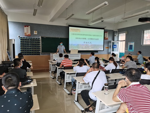 8月3日,2020年安徽省高等职业院校教师素质提高计划国家级培训项目“‘双师型’教师专业技能培训-信息安全与管理”“紧缺领域教师技术技能传承创新-云计算技术与应用”在我校信息学院举行开班典礼,来自安徽省20所高职院校的41名专业教师参加了此次培训。开班典礼由信息学院副院长徐占鹏主持,信息学院院长常中华及各培训班班主任参加。