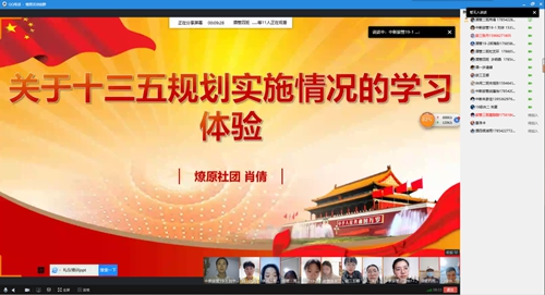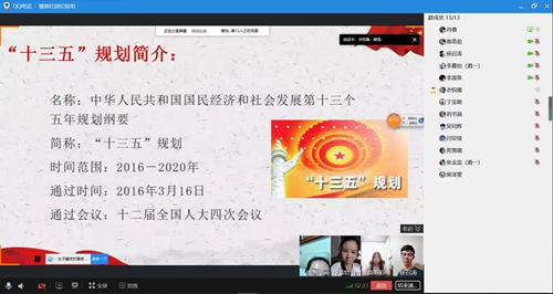 刘宇同学带领小组成员对关于十三五规划的实施情况进行学习