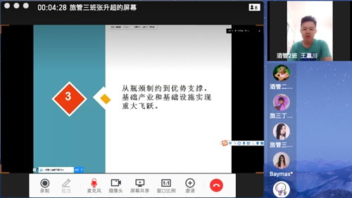 王赢川同学为小组成员介绍我国经济的飞跃发展