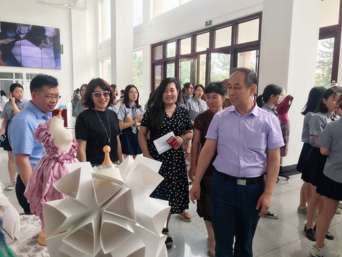 青岛商务学校2019级环境艺术设计专业王欣作为学生代表发言,她介绍了自己布展的经历,展现了艺术学子的自信青春和正能量,并对我校的培养和教师的教导表示感谢;服装与服饰设计专业刘晓音代表指导教师发言,她表示,教学成果展既是践行“育训结合、知行合一”人才培养模式的一次积极探索,也是深化“三教”改革的一次有益尝试,展出作品反映了同学们对艺术和设计的理解与思考;青岛高新学校服装专业教师马玉杰发言,她代表全体中职带队教师对我校提供的良好学习环境,我校教师严谨的教学态度,同学们在我校的学习成果表示肯定,并希望同学们不忘初心,不断创新,开创自己的美好未来。