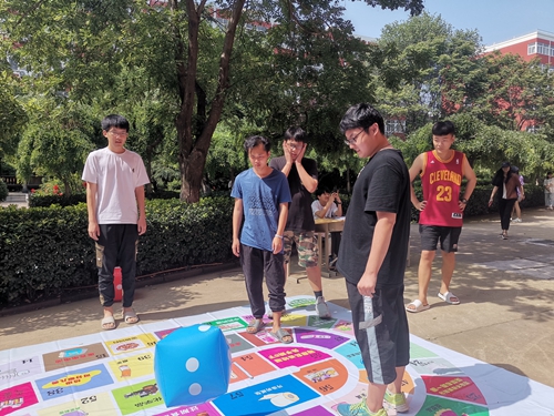 此次活动是微J分志愿服务项目的内容之一,分为线上和线下两个部分。线上活动通过问卷星APP开展节能知识有奖问答,内容涵盖生活节能、公共节能、低碳出行、绿色消费、垃圾分类等方面。同时活动还通过二维码答题页面引导同学们多渠道进行在线答题。活动在线下组织了“垃圾分类巧变大富翁”游戏,借助“垃圾分类飞行棋地垫布”,让同学们以掷骰子、按显示数字走节点等方式,回答垃圾分类小问题。