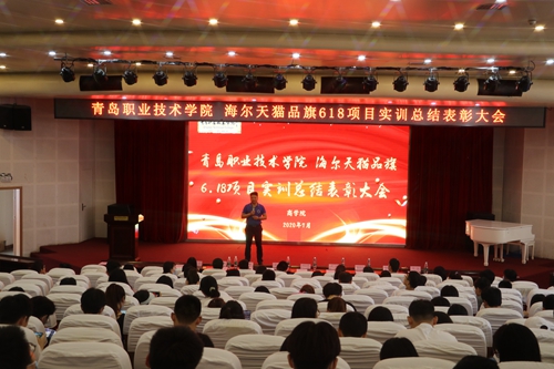 7月1日下午,商学院与青岛日日新信息服务有限公司联合举办的海尔家电品牌客户技术服务项目实训总结表彰大会在我校艺术厅举行。青岛日日新信息服务有限公司人力资源总监李尚耕、人力资源经理冯禄、天猫项目经理王志鹏出席表彰大会,商学院相关负责人、商学院市场营销专业师生代表近220人参加了大会。会议由商学院市场营销专业学生张玥主持。