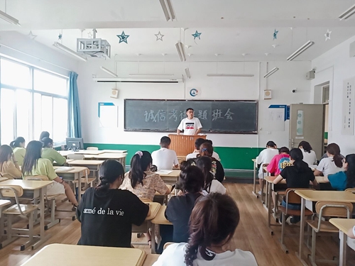 班会中,辅导员老师将诚信考试的重要性以及考试作弊的危害性,向同学们作了详细讲解,其中既有讲诚信的正面典范,也有失信案例的警示。同学们在班会课上围绕“考试诚信”话题展开了热烈而深入地讨论,大家纷纷表示要做一个诚实守信的新时代大学生,坚决做到诚信考试,诚信做人,并在诚信考试承诺书上签上了自己的名字。