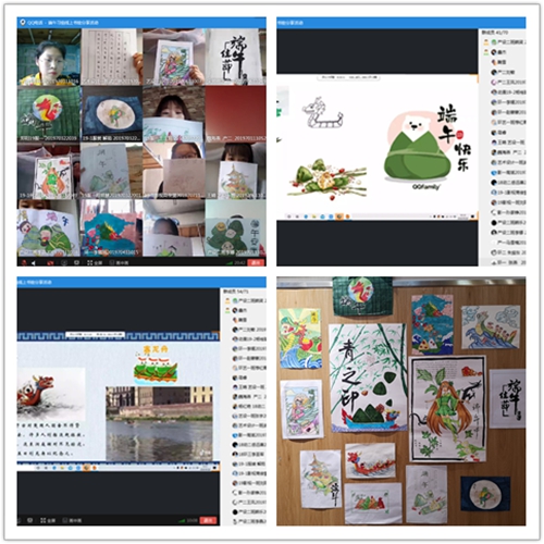 端午习俗线上书绘分享活动以线上宣讲、互动分享的方式,结合传统节日风俗视频,向同学们直播宣讲端午爱国故事、传统节日风俗。在互动环节,同学们纷纷创意彩绘端午习俗、书写咏诵屈原的诗歌和爱国诗篇,并将家乡端午习俗与书绘作品相结合进行交流分享。