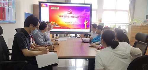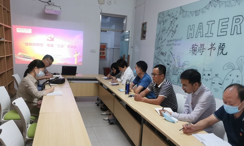 6月24日下午,海尔学院党总支教工第一、二、三党支部和学生党支部全体党员开展“提高协同性”专题“三述”交流会。会议分别由各党支部书记主持。