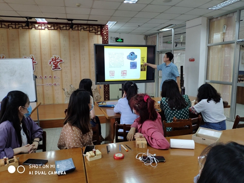 活动中,李宇建从我国篆刻文化起源和发展历程讲起,通过案例讲授不同字体的篆刻技法,并现场演示篆刻刀法。“青之艺”社团为参与活动的每位师生精心准备了印床、刻刀、砂纸、青田石、印泥等专用工具。师生兴致勃勃、跃跃欲试,纷纷拿起纸笔设计文字,专心致志用刻刀雕琢作品。在篆刻中,师生们充分理解了“篆刻是一项考验耐心与定力的细活”的含义,大家在印章的方寸之间,传承传统文化,体悟精益求精的工匠精神。