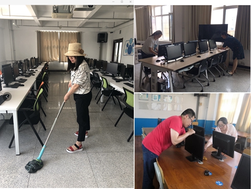 6月4日下午,信息学院全体教师以教研室为单位分工打扫教室和实训室。在全体教师的共同努力下,教学环境焕然一新,为学生复学复课准备了舒心的学习环境。教师们还在每个教室张贴了应急处理流程图、准备了通风记录表和学生因病缺课记录表等文档资料。除此之外,信息学院在修能楼一楼安装了由本学院自主研发的体温检测设备,以便师生进行体温检测。