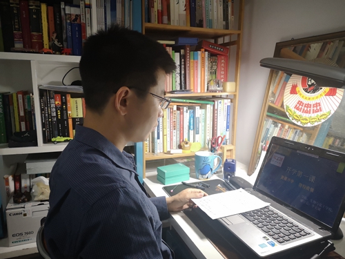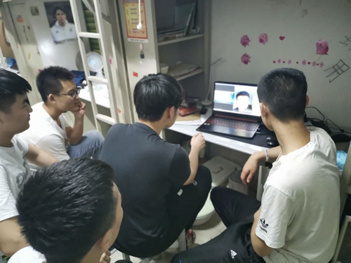 学生在宿舍观看直播