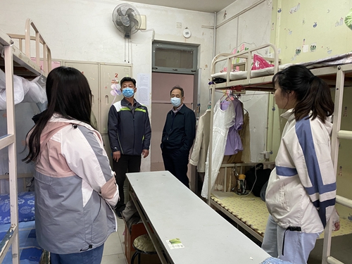 首批学生返校后,学校领导、学生处和信息学院相关负责人一行走进学生宿舍,与同学生们亲切交流。学校领导询问了同学们近期的生活和学习情况,指导同学们加强自我防疫,嘱咐同学们严格遵守学校关于疫情防控的各项规定等。