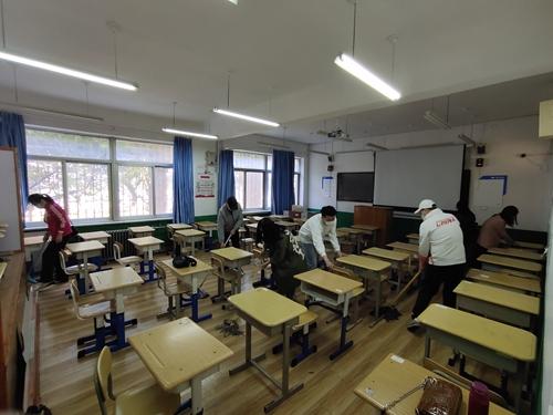 各专业教师打扫教室卫生