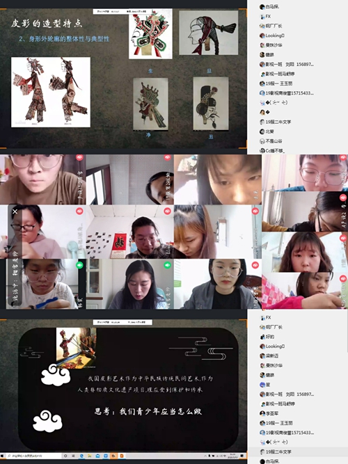 5月13日,艺馨书院举办了“匠心传承,皮影有戏”——“青之印”皮影非遗知识线上宣讲活动,艺术学院师生通过QQ群直播连线的方式共同领略了充满趣味和韵味的皮影非遗文化。
