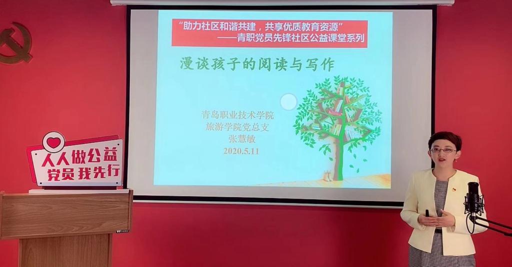 5月11日晚,我校与黄岛区长江路街道峨眉山路社区联合开展“助力社区和谐共建,共享优质教育资源”——青职党员先锋社区公益课堂系列主题活动。山东省党建工作样板支部创建单位、旅游学院教工第三党支部书记张慧敏副教授以“漫谈孩子的阅读与写作”为主题通过抖音平台面向峨眉山路社区开展网上直播第一期讲座。张慧敏结合自己培养孩子阅读习惯及写作能力的亲身经历,聚焦孩子阅读与写作方面遇到的具体问题,与大家分享了切实可行的具体做法。