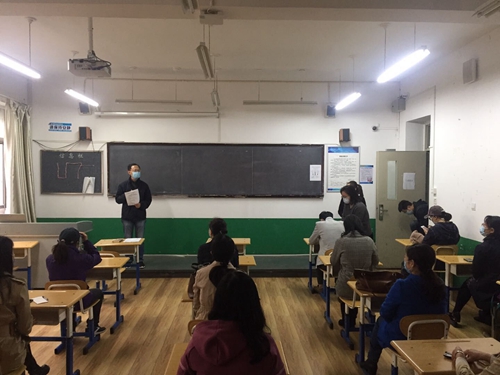 现场演练分为3个科目,分别设在闻道楼115、117教室和知行书院。一是学生上课和突发异常情况应急处置流程,演练学生在上课期间异常的应急处置;二是教师上课和突发异常情况应急处置流程,演练教师在上课过程中,出现身体不适时所采取的应急处置。三是学生公寓门口身份查验和宿舍内学生自测体温、体温异常处理。