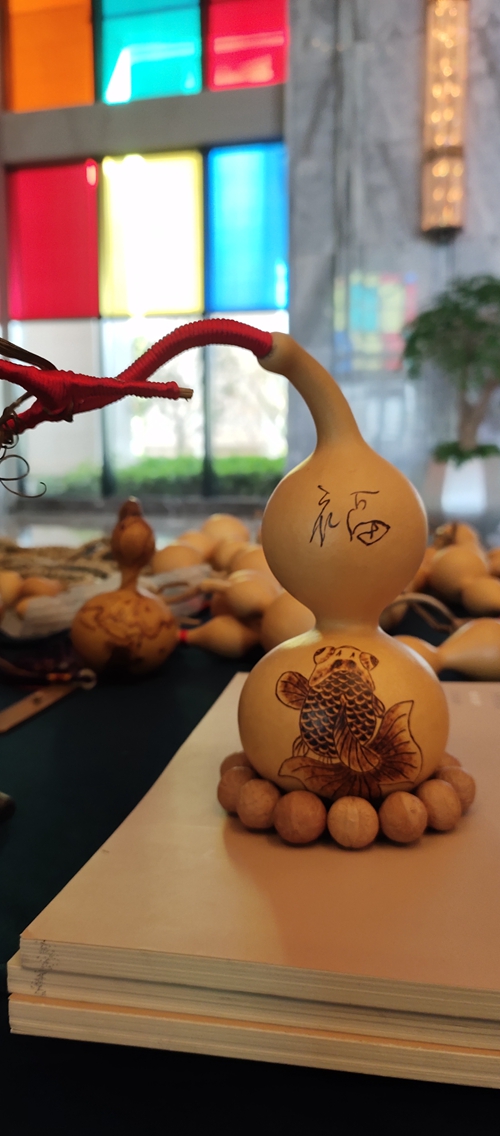 张连杰老师现场展示双鱼戏水葫芦的设计与制作
